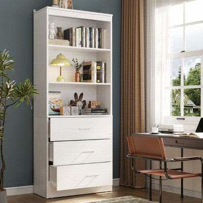 Besiost 71-In Tall Bookshelf with Wood Drawers, Display Storage Bookcase