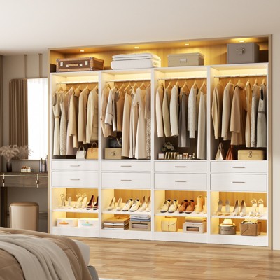 Besiost 75-In Closet Organizer with Wood Drawers and Shoe Rack, Freestanding Closet System with Hanging Rods - White