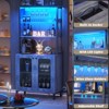 It's the all-purpose home bar cabinet you've been looking for. Our wine cooler comes with 3 power outlets and 2 USB charging ports, making it easy to charge a toaster, bar accessories, glowing decorations, and even mobile phones and other appliances. Perfect for your kitchen, dining room, or living room. It can be used as a coffee bar in the living room, a TV stand, or a hallway console. Set the mood with vibrant RGB LED lighting. Synchronize the lights with the music to create a lively atmosphere for a party or wine tasting.
