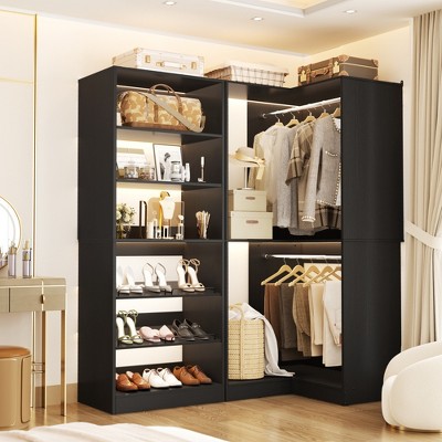 Besiost Closet System Set with 6 Drawers and 5 Hanging Rods, Walk-In Closet Organizer with 6 Shelves, Black