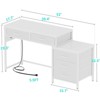 Meet your new favorite workspace—a home office desk where smart design meets everyday convenience. Five spacious fabric drawers keep supplies neatly stored yet always within reach, while built-in power outlets and USB ports ensure your devices stay charged and ready. The innovative flip-top design offers effortless access to storage while maintaining a clean, contemporary silhouette. Crafted from durable materials, this desk promises lasting reliability for any environment. More than just a desk—it's your dedicated zone for productivity and comfort, designed to elevate how you work and live.