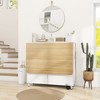 - Multifunctional Table-At the bottom of drop leaves, there are holes for hidden buckles to lock up the active table plates. It can be a writing desk or a small stand in folding placed in a corner. As the entryway table when fully folded.