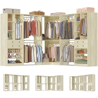 Are you in search of the perfect wardrobe rack that combines a clothes hanging section, shoe rack, drawer, and storage rack all in one? Look no further than our classic and stylish wardrobe rack that is designed to meet all of your needs. The closet system includes 2 reversible closet organizer systems + 1corner closet system. It can hold dresses, T-shirts, jackets, storage boxes, shoes, baskets, folded clothes, bedding etc. Crafted from premium-quality materials, our closet system set is durable and sturdy, ensuring it can withstand the test of time. Easy to assemble and move around, this closet is ideal for anyone who loves organization. It is perfect for DIY needs. Free combination according to your needs. No need to attach the wall!