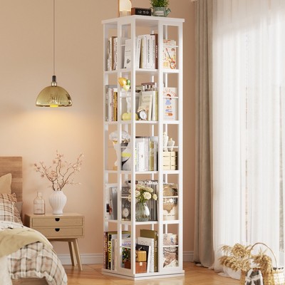 Clean & Practical Design - Sleek, rotating style meets everyday function. Unlike round shelves, this design fits standard books perfectly while showcasing decor with elegance—making organization both beautiful and practical.