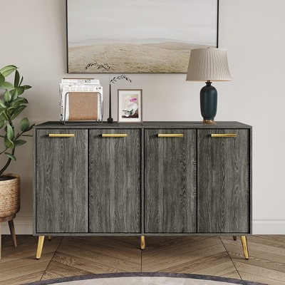 Besiost Kitchen Storage Cabinet with Charging Station, Farmhouse Coffee Bar Cabinet with Barn Door - Dark Gray