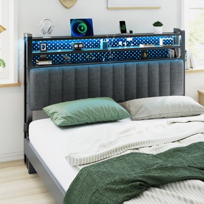 Besiost Queen Upholstered Headboard with Storage Bags-Gray Oak