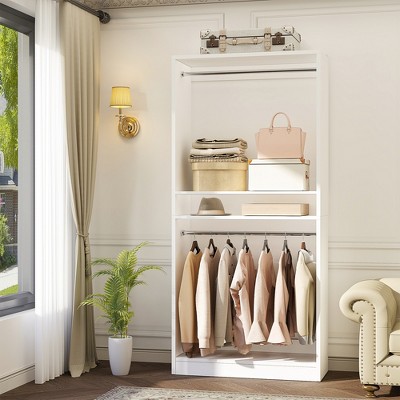 Besiost Set of Two 80"-120"W Closet System with Door and Wooden Drawers-Beige Oak