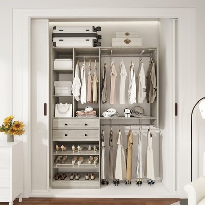 Freestanding Closet Organizer System - This kit includes a freestanding closet and a corner closet. It has four hanging rods, 7 open shelves, and 2 adjustable shelves. Perfect for walk - in closets, bedrooms.