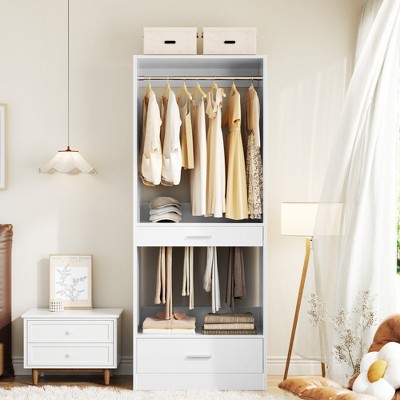 Besiost White Freestanding Closet Storage System with Shoes Shelf and Hanging Rods, Walk-In Closet Organizer with Drawers