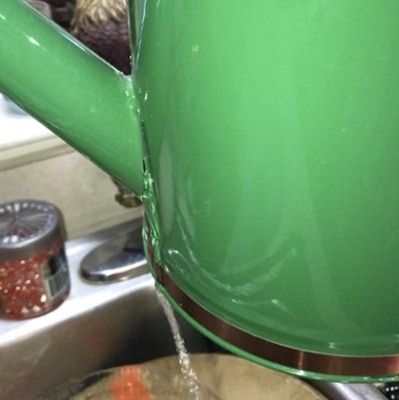 [This review was collected as part of a promotion.] Love this watering can…color is awesome…handle does not hurt your hand!!!! Received quickly!