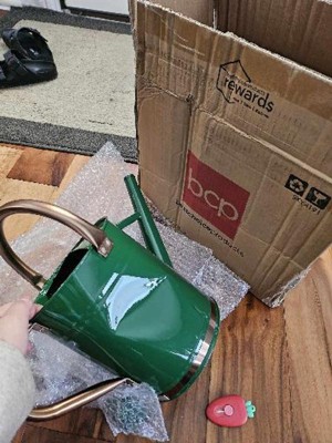 Watering Can is quality made and durable. Green with gold trim makes for a nice gift.