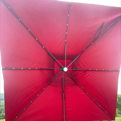 Go big this sunny season with our 2-tier cantilever umbrella, available in 9x12ft, 10x10ft, or 12x12ft sizes! The dual-layer canopy promotes airflow, keeping you cool while providing up to 144 sq. ft. of sun protection. Easily adjust the free-motion canopy angle to follow the sun, and enjoy evening gatherings with built-in solar-powered LED lights. Comes with a 4-piece fillable base—use sand or water for sturdy, tilt-resistant support. Stylish, functional, and perfect for any backyard or patio retreat!