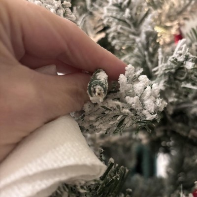 I wanted to love this, but it seems they packaged it before the flocking was dry and every single branch is a flat mess.. There is no "greenery" in the middle of the branches so its not very full either. I will be buying a large garland to fill it out, but for the price I really thought it would he nicer.