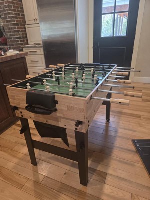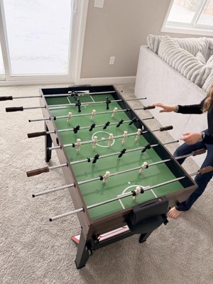 My home has average-sized rooms and we just don't have the space for a larger game table. My kids love to play games, so I thought this would be a perfect gift for them. It's very suitable for younger kids, but I know even my high school age kids will have fun with it. I love that it's a good screen-free, interactive activity. And I appreciate you can stack and store all the parts on and under the game table. The quality is great for the price.