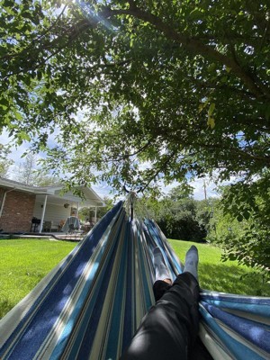 [This review was collected as part of a promotion.] Good sturdy hammock. It has withstood my grandkids use of it.