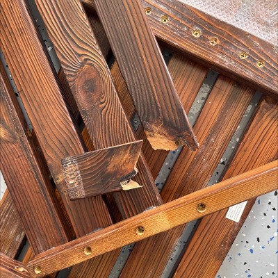 Purchased last year and I loved this at first, but by the end of the summer, the color had faded and now it’s in desperate need of either paint, stain, sanding or all the above. It’s not nearly as pretty as it was. Rather disappointed.