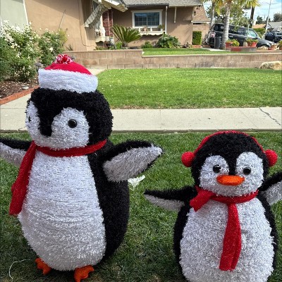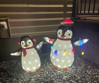 This is an acceptable item if you’re just planning on keeping it in your house. I placed it outside next to my front porch and noticed within a day or two that the larger penguin would not stand straight. It was installed correctly. After taking him in the house and looking at it, I noticed the fabric was not attached to the frame in a few places. It wasn’t clear whether it arrived that way, or it just pulled apart outside from some moderate wind. The fabric was attached with some glue, but given how thin the fabric is, it’s just not adequate to keep together for outdoors. Super disappointed.