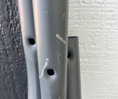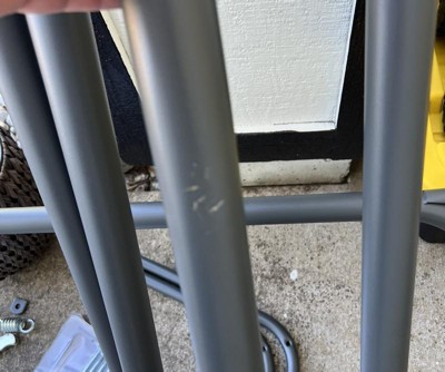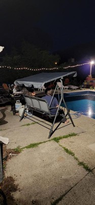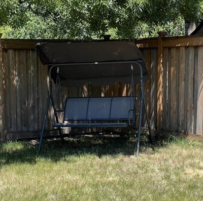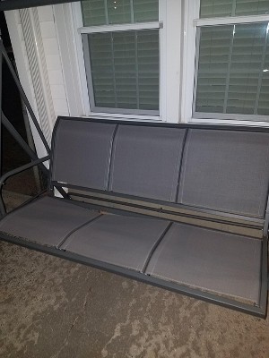 I bought this swing to replace my previous one. I love the Gray color and comfortable seat (without cusions to blow away, get wet and moldy, or need to store). The frame could be sturdier. Not sure why they designed the main top frame in 2 pieces. Only allows for it to bow and wobble amd not feel very safe. We will be modifying it in some way because I am not taking it apart to send it back!