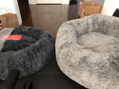 The “fur” is sparse like tinsel, and it is very flat. For $20 more, the FurHaven donut bed (right) is WAY better. BTW, the pic doesn’t show how flat the bed really is.