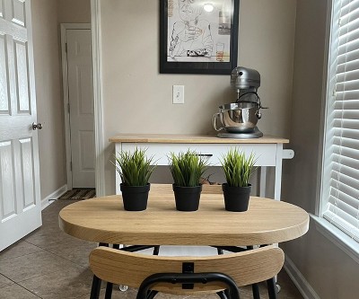 My 3 piece oval dinning table fits perfectly in our little kitchen. It’s comfortable and sturdy and honestly quite sleek.