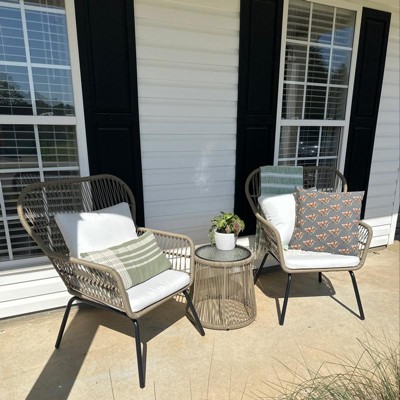 A: Hi AMS, I will be happy to assist you with this question, although is very similar to the Latigo set, it might not match since that is not a BCP product, the matching set for this chairs will be our Outdoor Rope Woven Sectional Patio Furniture L-Shaped Conversation Set w/ Cushions, Table, you can copy and paste that name is the Target search bar and you will find it. I hope this information is helpful. Thank you for your question and your interest in our Patio set. -Roxanne P.