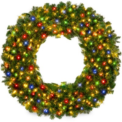 Best Choice Products Artificial Pre-Lit Fir Christmas Wreath Decoration w/ LED Lights, Power Plug-In