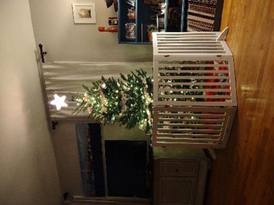 Perfect to prevent our kitten from running out the front door when we open it to get packages. Very happy w/ the height and width, as well as the convenience of a door vs. constantly moving the entire gate. Makes it even more sturdy with the cross legs included. We will purchase another one for our garage door hallway.