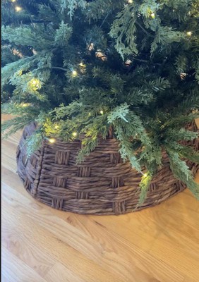 Best Choice Products 24in Woven Hyacinth Christmas Tree Collar, Tree Skirt Accessory w/ Cord Cut-Out