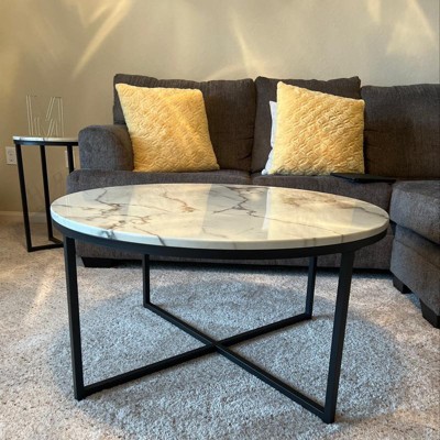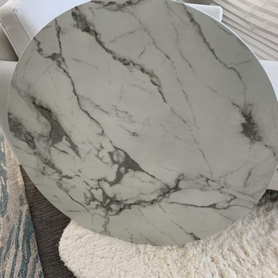 Best Choice Products 36in Faux Marble Modern Round Living Room Accent Coffee Table w/ Metal Frame - White/Black