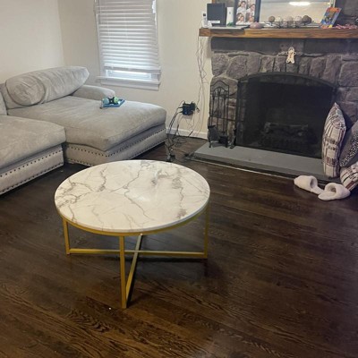This coffee table has received positive feedback for its stylish design, ease of assembly, and sturdy construction. Guests appreciate its aesthetic appeal, particularly the faux marble top and elegant frame, which complement various decor styles. Many find it a great value for the price, making it a perfect addition to family spaces. However, some guests have noted concerns about the quality of materials used, particularly regarding scratches and durability over time.