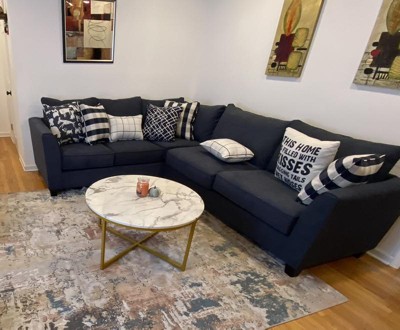 Perfect for family room:loft. Easy to assemble. Not too heavy to move. We love it!