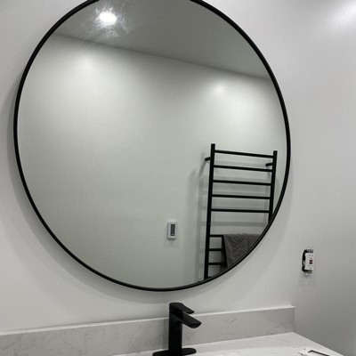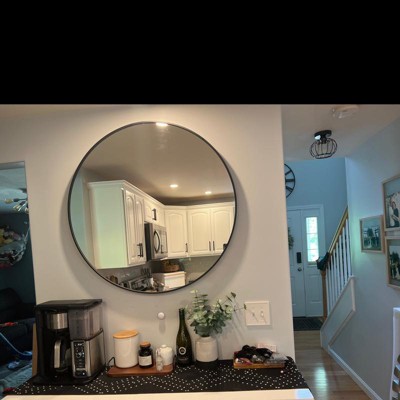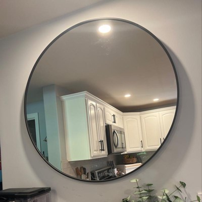 Enhance any room in your living space with a 36-inch round mirror, a simple yet attractive design that makes this mirror a stylish and useful addition to your interior decor. Find your best look with this mirror hung in your bathroom or make it an elegant addition to your living room. No matter the use, your home will thank you. Your sturdy, 1.5-inch-thick mirror is made with durable metal and glass for a heavy-duty design that adds lasting elegance to any setting. Designed with safety in mind; anti-blast film sticks to the glass to help prevent shattered pieces from leaving the frame, while a thick metal frame adds to the durability and safety-first design for years of enjoyment. Comes ready to hang right out of the box, mount your lightweight mirror with 2 brackets for a sturdy hold.