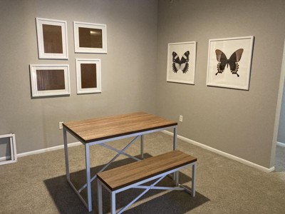 [This review was collected as part of a promotion.] Great table for a small space. Love that the benches can be completely pushed under the table and the two tone really adds a pretty look to the space. It is also very easy to clean. My only dislike is how sharp the corners of the table and benches are but otherwise I am very happy with my purchase and would recommend to others.