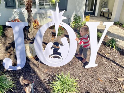 [This review was collected as part of a promotion.] I love the “JOY” decoration from BCP. It was easy to put together and looks great in my yard! The material that it’s made from seems sturdy and has held up great in the rain!