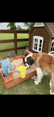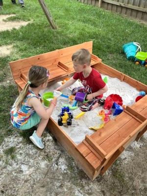 [This review was collected as part of a promotion.] Excellent sandbox! It’s the perfect size. It allows for several kiddos to play together. The seats keep them up out the sand if they don’t want to sit in it. The folding top helps keep the sand clean from wandering kitties!!! This is a great item for imaginative, outdoor play.