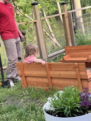 Great looking sandbox and the cedar is really quality, but the assembly was poor. Multiple pieces didn’t fit so we had to Jerry-rig in a few places. Also the bench pieces don’t fit to cover the sandbox completely. Overall disappointing purchase.