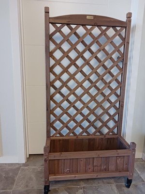 Best Choice Products 48in Mobile Wood Planter Box & Diamond Lattice Trellis, w/ Drainage Holes, Optional Wheels - Walnut