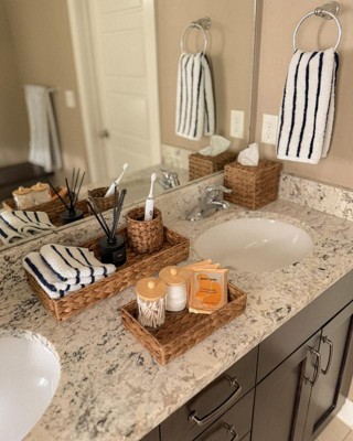 I’m so happy with this 6-piece bathroom set! 🛁 I put it in my bathroom, and it instantly feels organized and stylish. Each piece is handwoven from natural water hyacinth, so every item has its own unique texture and warmth. The set is practical too — the waste basket has a removable liner, the trays and canisters are easy to use, and the toilet paper holder works perfectly. Everything fits nicely on my countertop without feeling crowded, and it’s already helping me keep my toiletries and essentials neatly stored. I love how cohesive and natural it looks — it’s perfect for adding a touch of style and organization to any space!