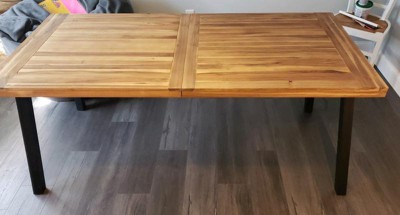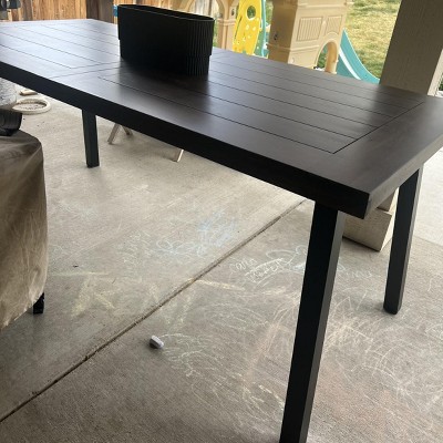 [This review was collected as part of a promotion.] Great outdoor table! Lots of compliments. Easy to put together. Looks amazing with my black chairs. Hoping it holds up in the crazy MN weather.