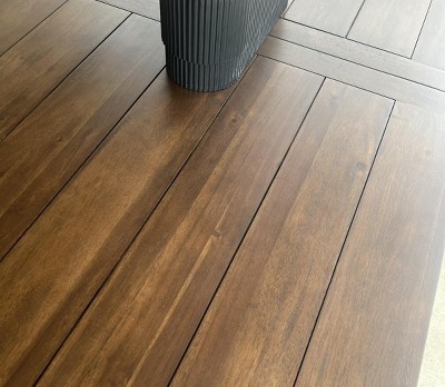 I purchased this table as a birthday gift for my daughter who lives in Seattle, WA. The grain of the wood is just lovely and she is very impressed with the quality. It's such a pretty table she was very tempted to bring it inside and use in her dining room. Because she lives where it rains all the time, she's got it under a covered patio. Based on her feedback I highly recommend this table.