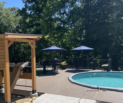[This review was collected as part of a promotion.] Easy to open & close. Looks amazing day or night with solar lights. Just right size for small deck. Quality and warranties are very good. Would recommend. Very happy with color, quality and accessories.