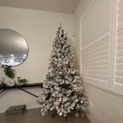 This tree is beautiful. Bought the 6 ft tree and was pleasantly surprised at how beautiful it is. The flocking is perfect and makes the tree look nice and full. It does shed the “snow” while setting up, but not too bad. Had a few different settings for the lights. We like the twinkle.