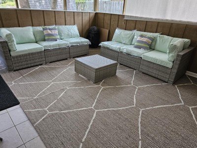 Horrible junk quality. Cushions randomly discolored. The contents of the pillow are disintegrating. I opened to wash and the pillow insides were completely crumbling. I have only had the set less than 6 months and it is always covered when not in use. Seat cushions do not stay in place.