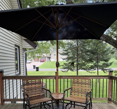 I loved the size. It’s large enough to cover the seating area that we wanted to sit under. I also love the faux wood pole. Even though it’s not real wood, it looks like it. It was just the look we were hoping for! Fabric is light, not a heavy canvas, but shouldn’t be an issue as long as you make sure to lower it when there is heavy winds or storms.