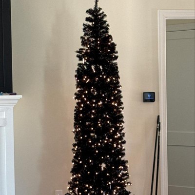 Reimagine your holiday decor with our Black Pencil Tree, meticulously designed to blend quality craftsmanship and convenience seamlessly. Crafted with sturdy metal hinges and flame-retardant PVC branches, this tree stands tall with the support of a reliable metal base, ensuring it remains a cherished part of your holiday season for years to come. Its slim, space-saving profile is a versatile addition, serving as an elegant entryway accent or a captivating centerpiece for your festive displays. Available in various heights, from 4.5ft to 12ft, with branch tips ranging from 290 to 1,800, this Pre-Lit Pencil Tree features warm white incandescent lights that cast a soft, enchanting glow, elevating the holiday spirit in your home. Assembly is a breeze with just three simple steps: connect the base to the largest section, attach the remaining sections, and fluff the branches for full coverage. Customize your tree with garland, lights, ornaments, tinsel, and DIY decor to accentuate different areas of your living space, office, or even a Halloween party. Embrace the possibilities and make this tree your canvas for holiday magic!