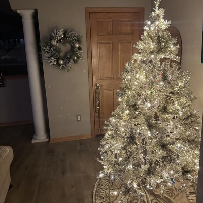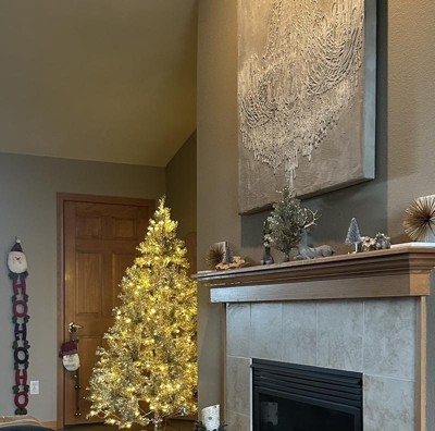 Make a bold statement this season with a dazzling gold tinsel Christmas tree! This unique, shimmering tree is pre-lit with warm white LED lights for a cozy glow, with branch tips that capture and reflect light, creating an eye-catching display. Designed to impress, each size (from 6 to 9 feet) comes with hundreds of lights and thousands of shimmering branches to brighten any room. Assembly is simple: stack, secure, and fluff, so you can enjoy a festive atmosphere in no time. Built for lasting holiday cheer, it stands tall on a sturdy metal base for a glamorous, vibrant Christmas!