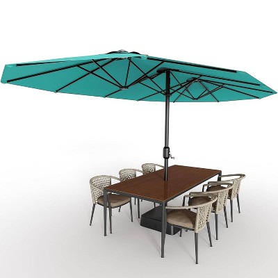 Best Choice Products Best Choice 9ft Fringe Market Umbrella Boho Patio Sunshade w/ Tilt, UPF50+ - Navy Pinstripe