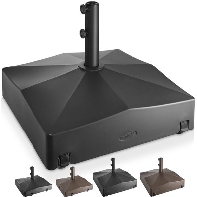 A: Hello ShayHill. I will be more than happy to assist you with this question. To find the appropriate base for this umbrella please search for: Best Choice Products 81lb. Heavy Duty Square Concrete Rolling Patio Umbrella Base Stand w/ Locking Wheels. I hope this was helpful to you. Jafet C.