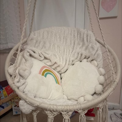 [This review was collected as part of a promotion.] I purchased two of the hanging macrame chairs and they've already been a blessing in my home. One I have in my lower level family room right next to the door wall looking out to the lake and this is where I do my morning devotion time. Golden. The other one is in our main level living room next to the door wall looking out to the lake and my grandkids will curl up on my lap and snuggle here. Blessing.
