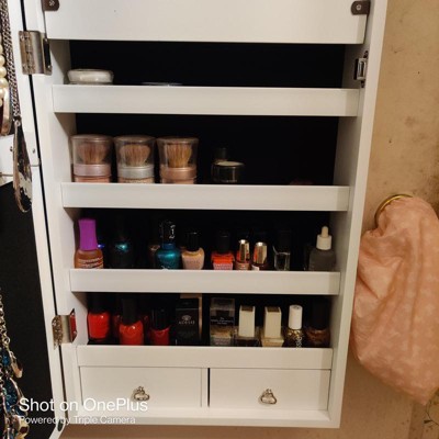 [This review was collected as part of a promotion.] Great purchase. Not only can you organize jewelry and makeup but the mirror is fabulous also!!!